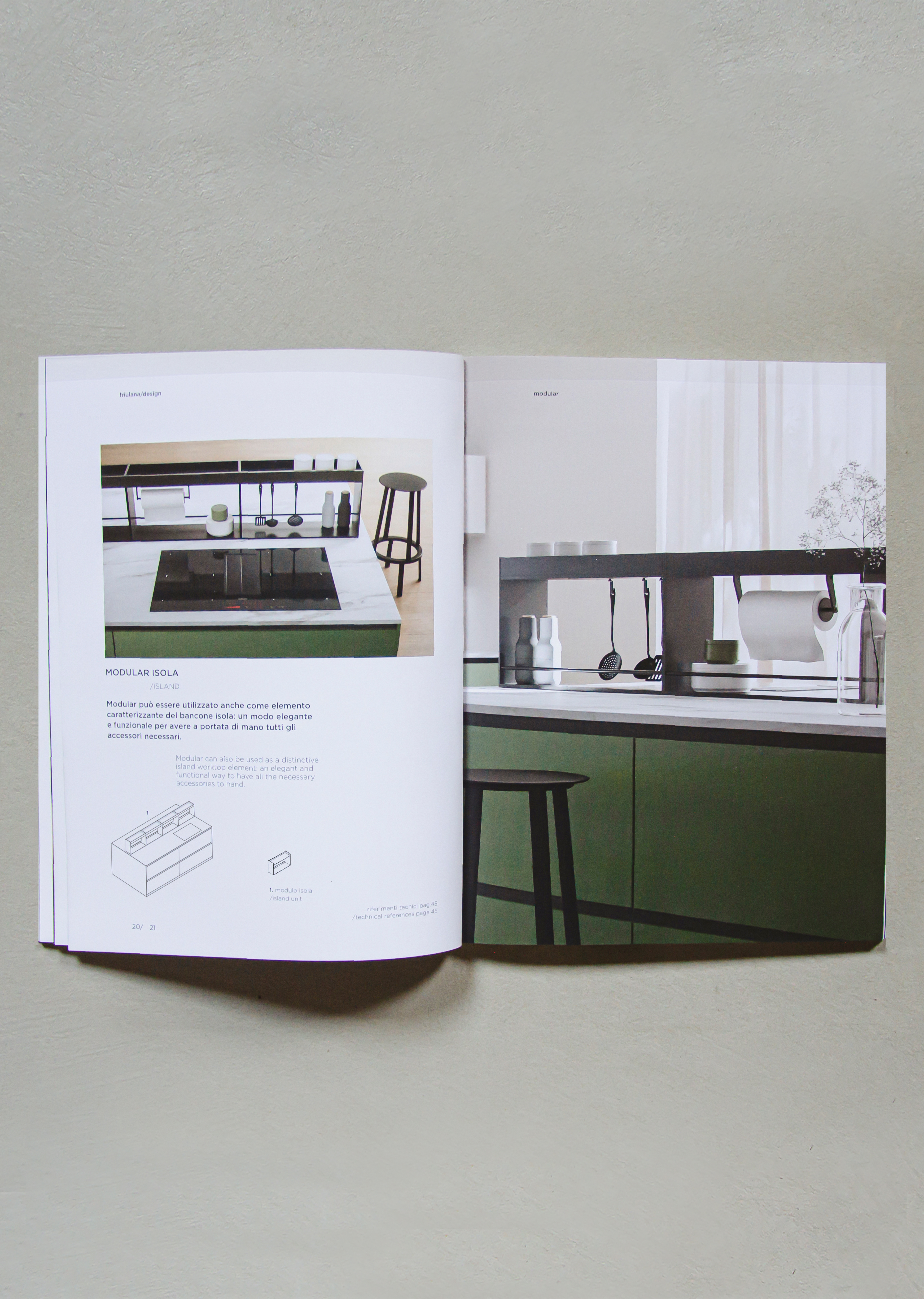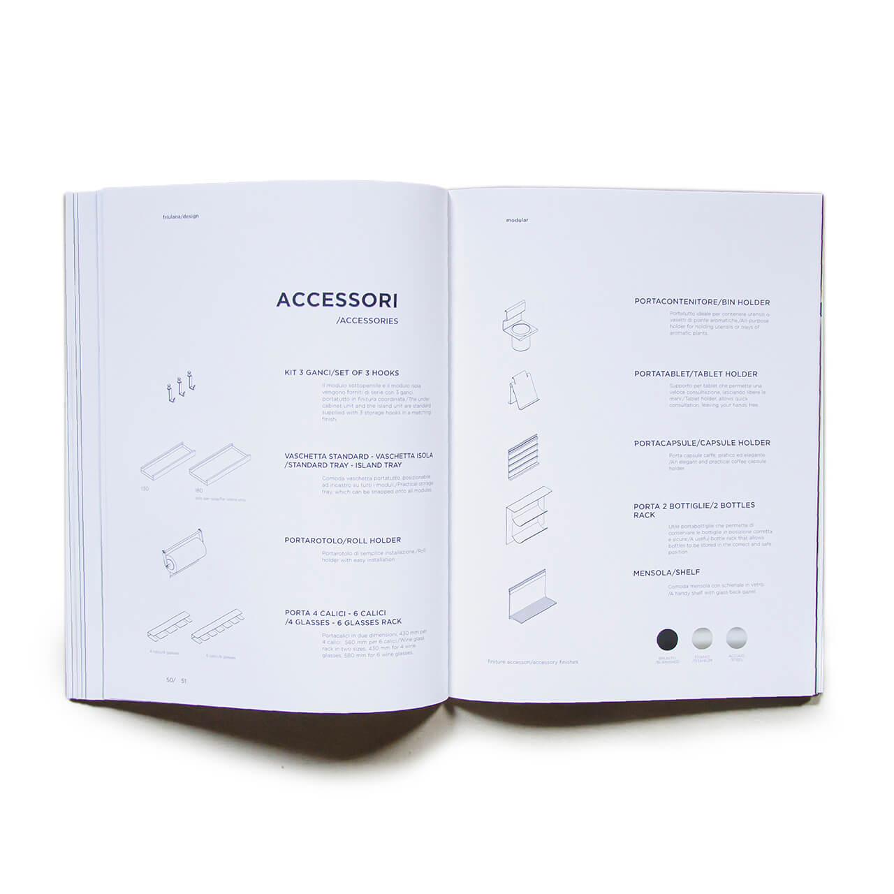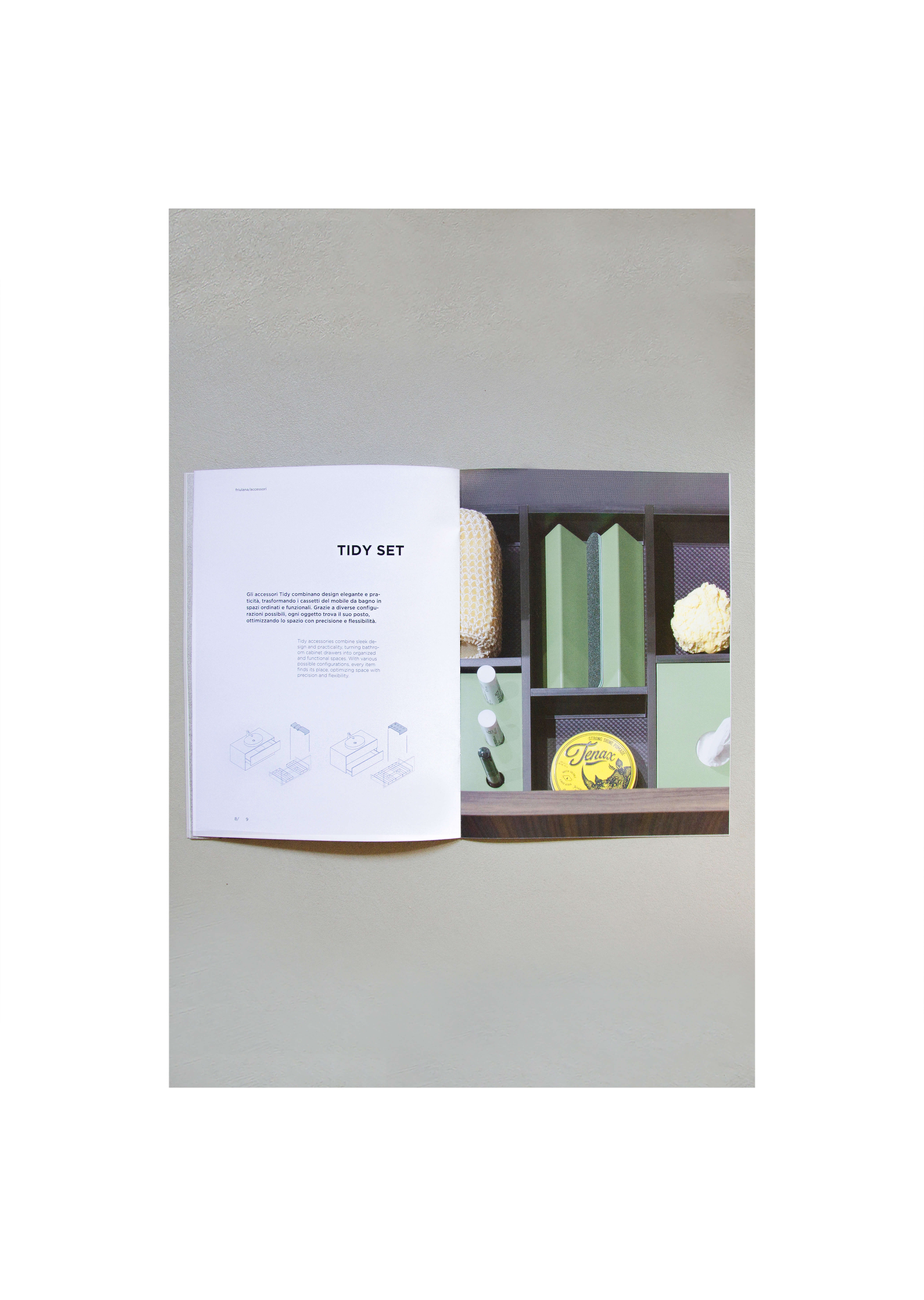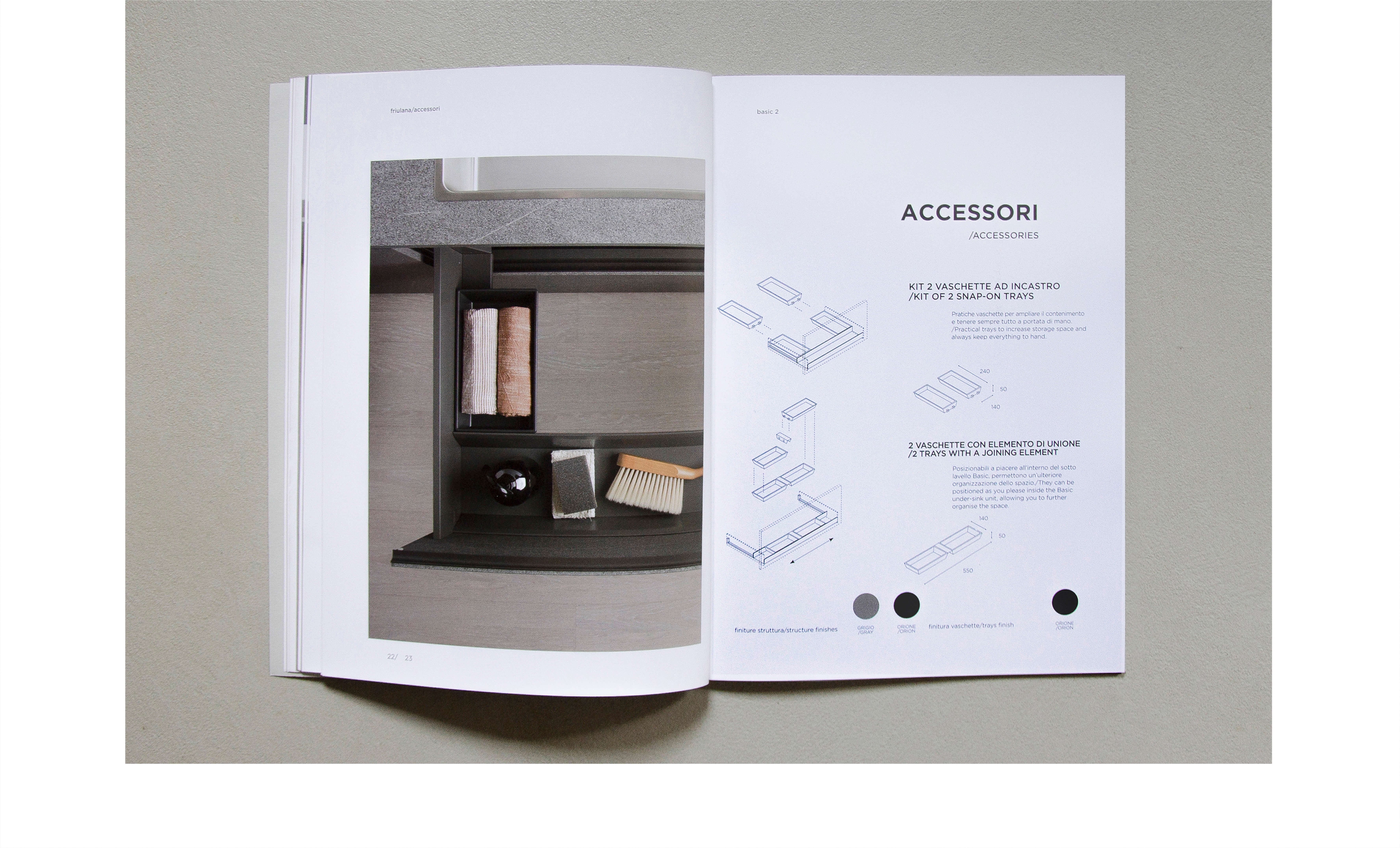 The collaboration with Friulana Accessori stems from the desire to create a visual narrative that reflects the brand’s precision and technical identity. The project includes the definition of the set design and the layout of the catalogues — tools conceived to translate technical complexity into a clear and balanced visual story. Each setting develops in dialogue with the product: proportions, materials, and colours are studied to create essential environments consistent with the company’s technical and industrial language. The graphic design focuses on order and readability, integrating technical drawings, renderings, and texts as complementary elements of a single narrative. Drawings, lines, and visual representations become active parts of the communication, reinforcing the precision and visual identity of Friulana Accessori.